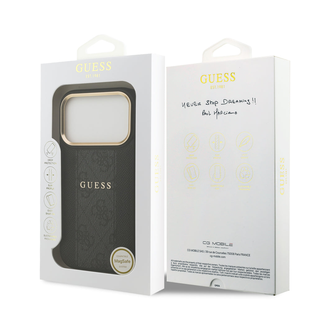 GUESS GUHMP17LPG4SEMCK Hardcase MagSafe PU W/ 4G PU Stripe Black iPhone 17 Pro