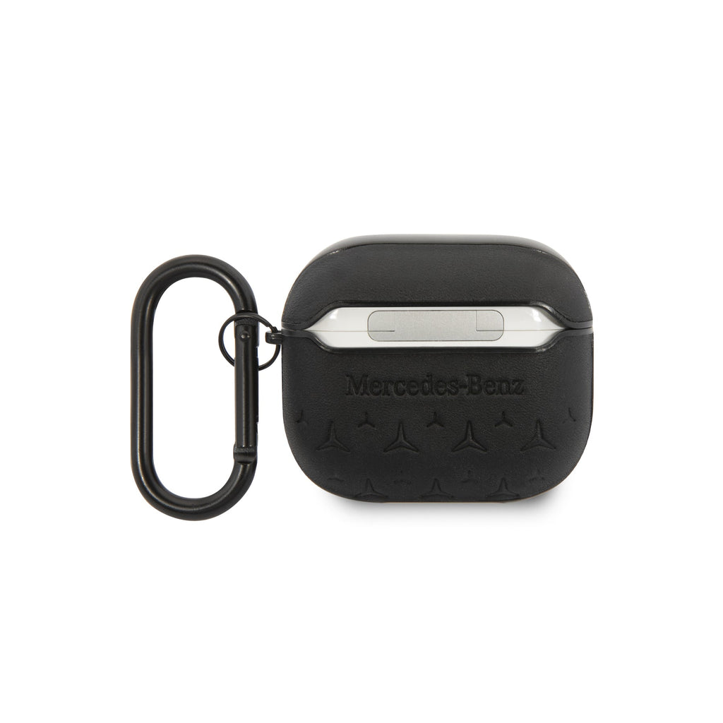 MERCEDES-BENZ - LEATHER AIRPODS CASE WITH DEBOSSED STAR PATTERN - BLACK