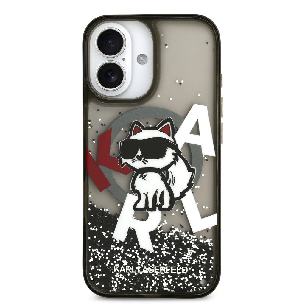 KARL KLHMP17SLCHSCTDK HardCase MagSafe LIQUID Glitter W/ CHOUPETTE Logo Black iPhone 17