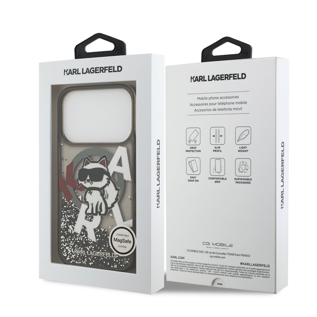 KARL KLHMP17LLCHSCTDK HardCase MagSafe LIQUID Glitter W/ CHOUPETTE Logo Black iPhone 17 Pro